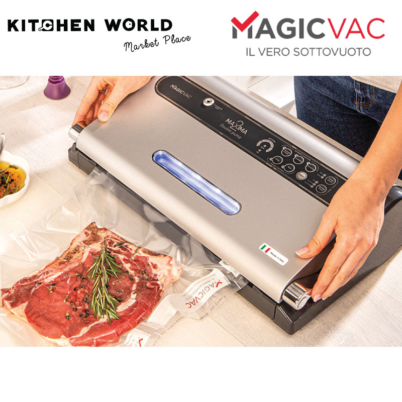 - Semi-professional vacuum sealing system, with extra powerful double pump 18 L/min.
