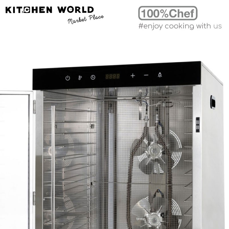 The trays are height adjustable and allow you to ferment dairy products such as yoghurt, dry all kinds of fruit vegetables and spices for decorating and making powders. Sugar, egg whites, obulato®, drying of meat and fish, processing of whole leaves or small shapes made with Krokanters®. Dehydration above 75°C allows you to work with ovo-products as well.