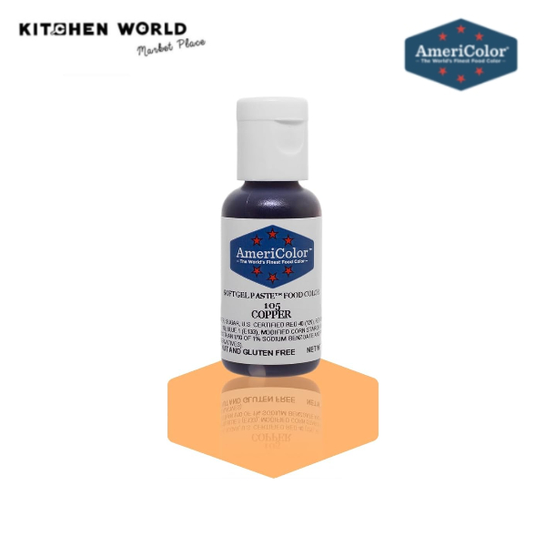 - สีผสมอาหารเนื้อเจลนุ่มสี Copper มีความเข้มข้นมากกว่าสีผสมอาหารอื่นๆ ไม่แยกชั้น ไม่ไหลเยิ้ม และไม่แข็งตัว