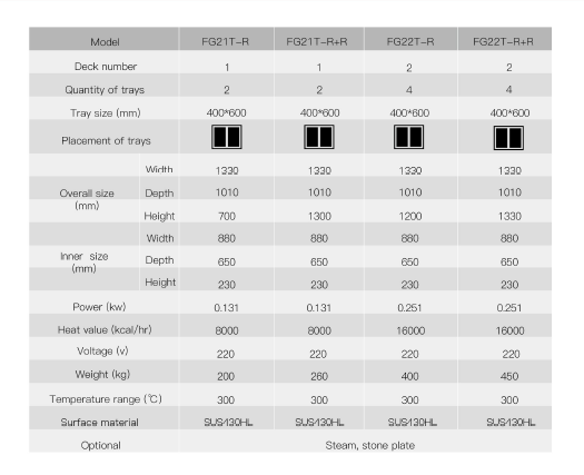 World-Seiki Japan FG22T-R+R Gas Deck Oven 2 Deck 4 Trays(40x60 cm), 133x101x133 cm+Steam&Stone+Rack