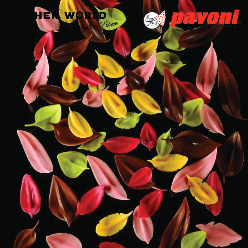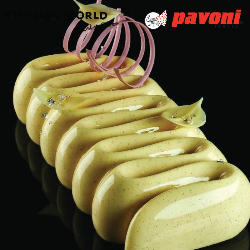 In the pictures an example of cake decoration using Flychoc on the Pavoni mould KE039.
