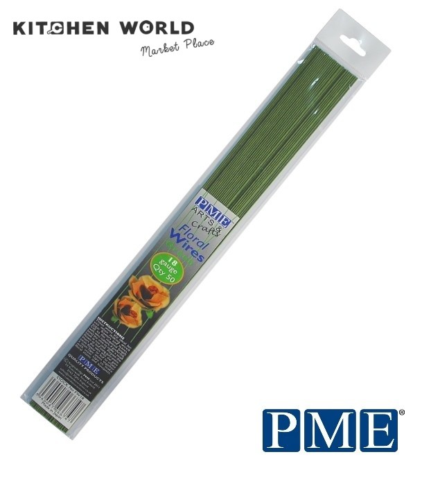 PME FW18 Floral Wires - Green 18 Gauge / ลวดสำหรับตกแต่งดอกไม้ 50 ชิ้น