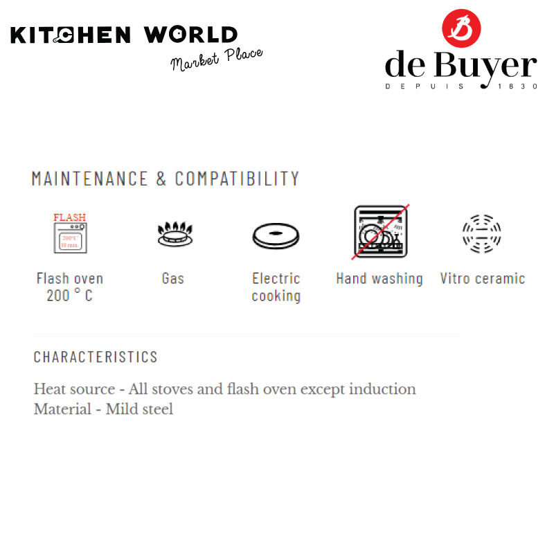 The leaf handle welded to this De Buyer Tôle Bleue sauté pan makes it safe and comfortable to hold. For the maintenance of this #Outdoor Blued Steel Sheet Pan, it is recommended to do so with a non-abrasive sponge. Remember to dry your Saute Saute Paysanne thoroughly after cleaning it.