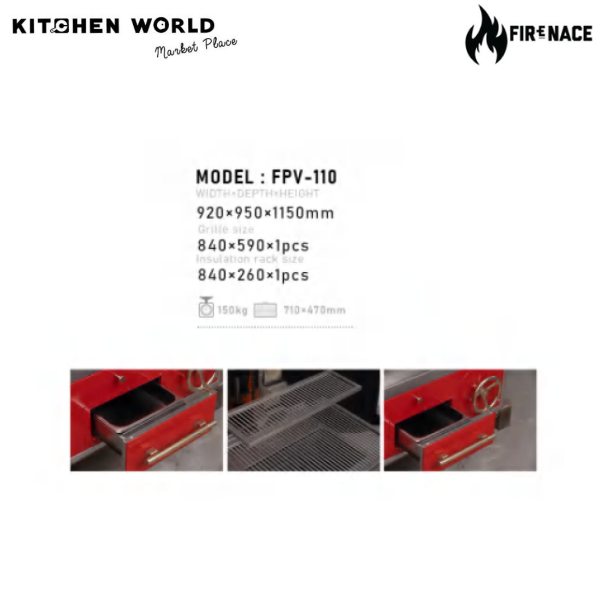 FIReNACE Canada FPV-110 Lifting grill FPV-110 / เตาปิ้งย่างระบบยกปรับระดับ